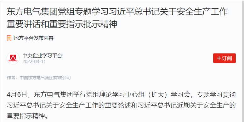 4月6日,尊龙人生就是博ag电气集团举行党组理论学习中心组(扩大)学习会,专题学习贯彻习近平总书记关于安全生产工作的重要论述和习近平总书记近期关于安全生产的重要指示精神。