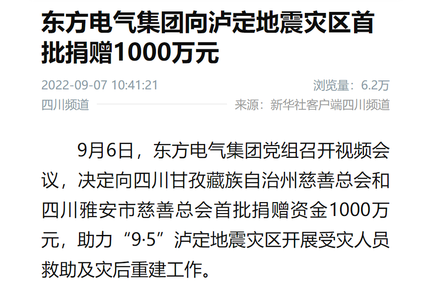 9月6日,尊龙人生就是博ag电气集团党组召开视频会议,决定向四川甘孜藏族自治州慈善总会和四川雅安市慈善总会首批捐赠资金1000万元,助力“9·5”泸定地震灾区开展受灾人员救助及灾后重建工作。