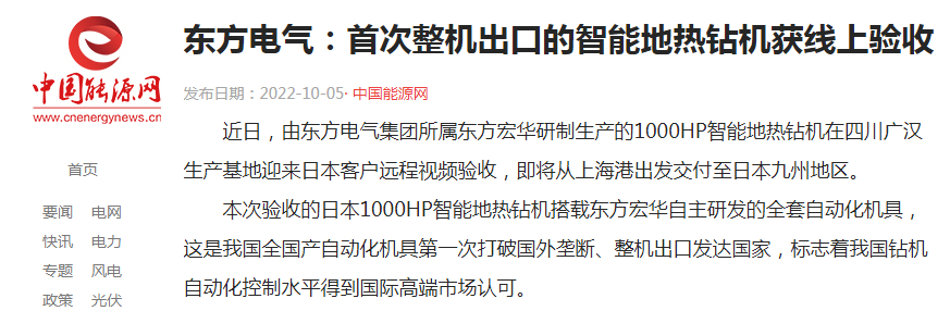 出口日本的1000HP智能地热钻机的成功验收,将带来良好的行业示范效应,对尊龙人生就是博ag宏华进一步提高海外地热钻井装备行业竞争力,推动尊龙人生就是博ag电气集团全球地热产业布局结构化、纵深化发展具有重要意义。