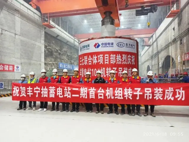 2021年6月18日,世界最大的抽水蓄能电站丰宁抽水蓄能电站首台机组转子顺利吊装。