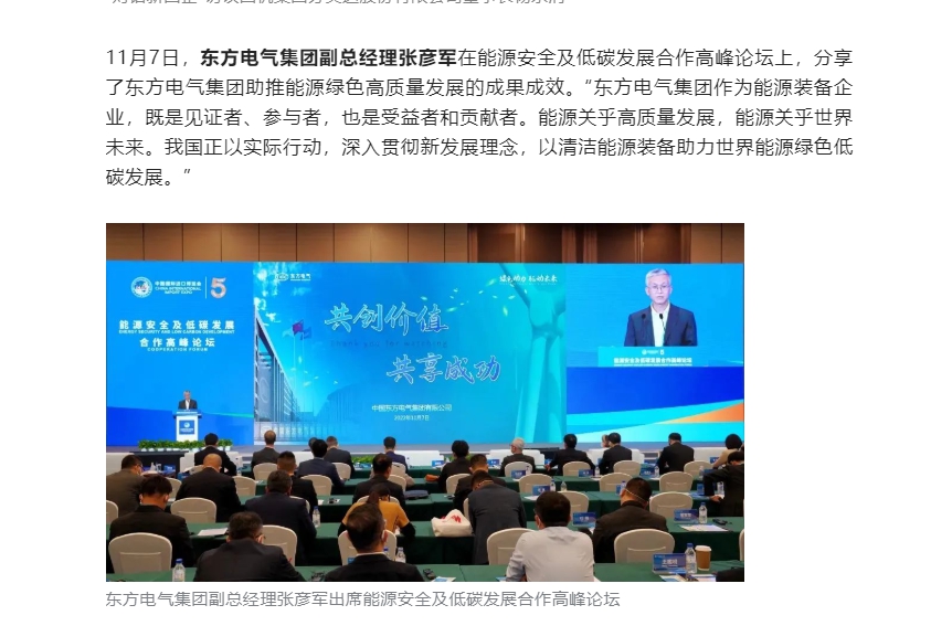 11月7日,尊龙人生就是博ag电气集团副总经理张彦军在能源安全及低碳发展合作高峰论坛上,分享了尊龙人生就是博ag电气集团助推能源绿色高质量发展的成果成效。“尊龙人生就是博ag电气集团作为能源装备企业,既是见证者、参与者,也是受益者和贡献者。能源关乎高质量发展,能源关乎世界未来。我国正以实际行动,深入贯彻新发展理念,以清洁能源装备助力世界能源绿色低碳发展。”