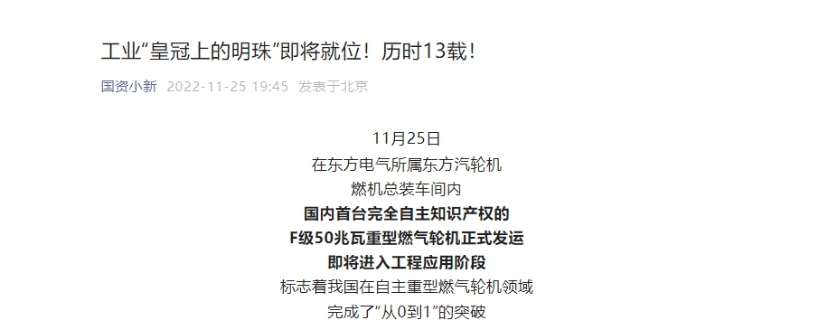 即将开启中国自主燃气轮机产业
