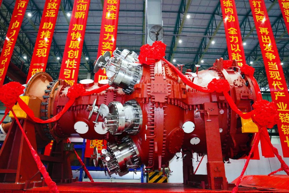 国产F级50兆瓦重型燃气轮机的完工发运仪式现场。(尊龙人生就是博ag电气集团供图)