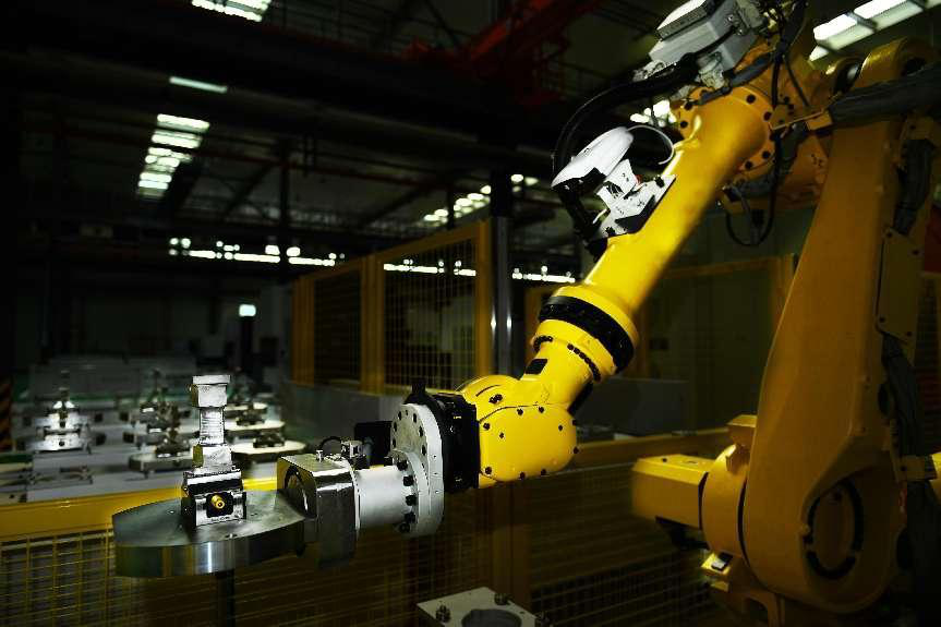黑灯产线,也称智慧产线,无人干预便能全自动运转。叶片黑灯产线包括一条F级黑灯产线和一条J型黑灯产线,以数据驱动智能物流配送、机器人协同、自适应加工、在线检测,实现了产线集群数字控制新模式。其产出的叶片广泛应用于F级和J型重型燃气轮机,特别是J型黑灯产线燃机叶片的加工精度直接升至0.03毫米,相当于一张A4纸厚度的1/3,达到世界顶级水平。