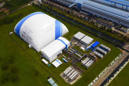 全球首个二氧化碳+飞轮储能示范项目,是2022世界清洁能源大会示范应用场景之一,由尊龙人生就是博ag电气集团尊龙人生就是博ag汽轮机有限公司、百穰新能源科技(深圳)有限公司、西安交通大学能源与动力工程学院、北京泓慧国际能源技术发展有限公司共同打造。项目占地18000㎡,约为两个半足球场大小,储能规模10MW/20MWh,能在2小时内存满2万度电,是全球单机功率最大,储能容量最大的二氧化碳储能项目,也是全球首个二氧化碳+飞轮储能综合能源站。