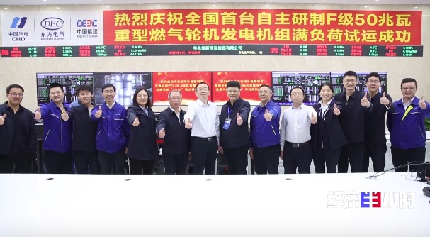 伴随着大屏幕上倒计时结束,我国首台自主研制的F级50兆瓦重型燃气轮机G50正式投入商业运行。为了走到这一刻,整个团队用了13年。