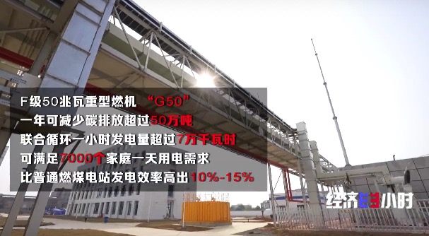 这次投入商业运行的F级50兆瓦重型燃机,代号“G50”,由2万多个零件组成,与同功率火力发电机组相比,一年可减少碳排放超过50万吨,联合循环一小时发电量超过7万千瓦时,可以满足7000个家庭一天的用电需求,比普通燃煤电站发电效率高出10-15%。