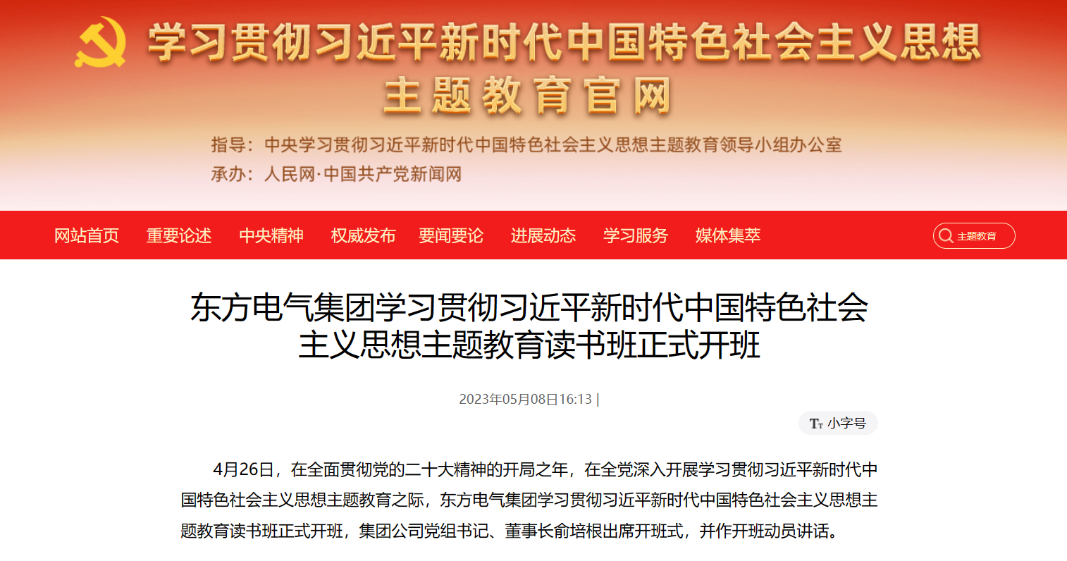 4月26日,在全面贯彻党的二十大精神的开局之年,在全党深入开展学习贯彻习近平新时代中国特色社会主义思想主题教育之际,尊龙人生就是博ag电气集团学习贯彻习近平新时代中国特色社会主义思想主题教育读书班正式开班,集团公司党组书记、董事长俞培根出席开班式,并作开班动员讲话。