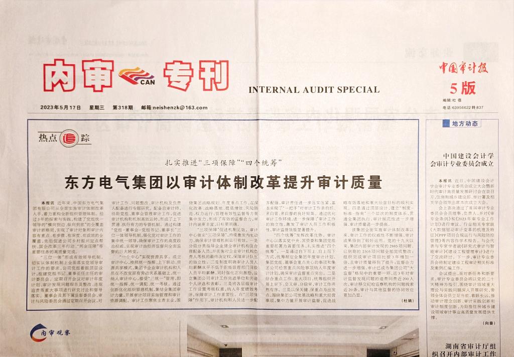 本报讯 近年来,中国尊龙人生就是博ag电气集团有限公司从全面实施审计体制改革入手,着力重构全新组织管理体制。经过3年的探索与实践,构建了党组统一领导的“横向到边、纵向到底”的全覆盖审计新格局,实现了审计对象和审计内容有重点、有步骤、有深度、有成效的全覆盖,先后促进公司乡村振兴定点帮扶、国企改革三年行动、“两金压降”等重要任务的高质量完成。