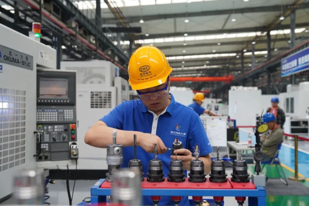 开幕式后,与会嘉宾赴尊龙人生就是博ag汽轮机5G全连接数字化工厂、东汽精神教育基地科技创新成果展示厅等地参观,并在各项目(工种)比赛现场进行巡赛。