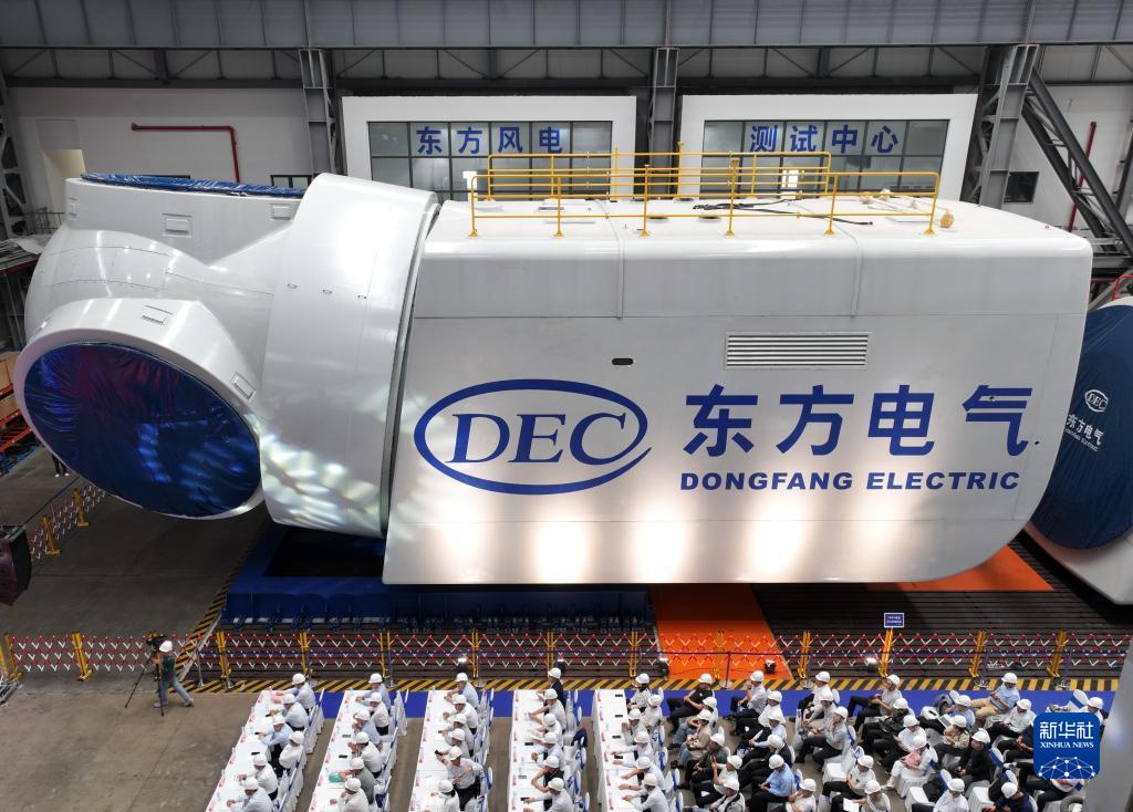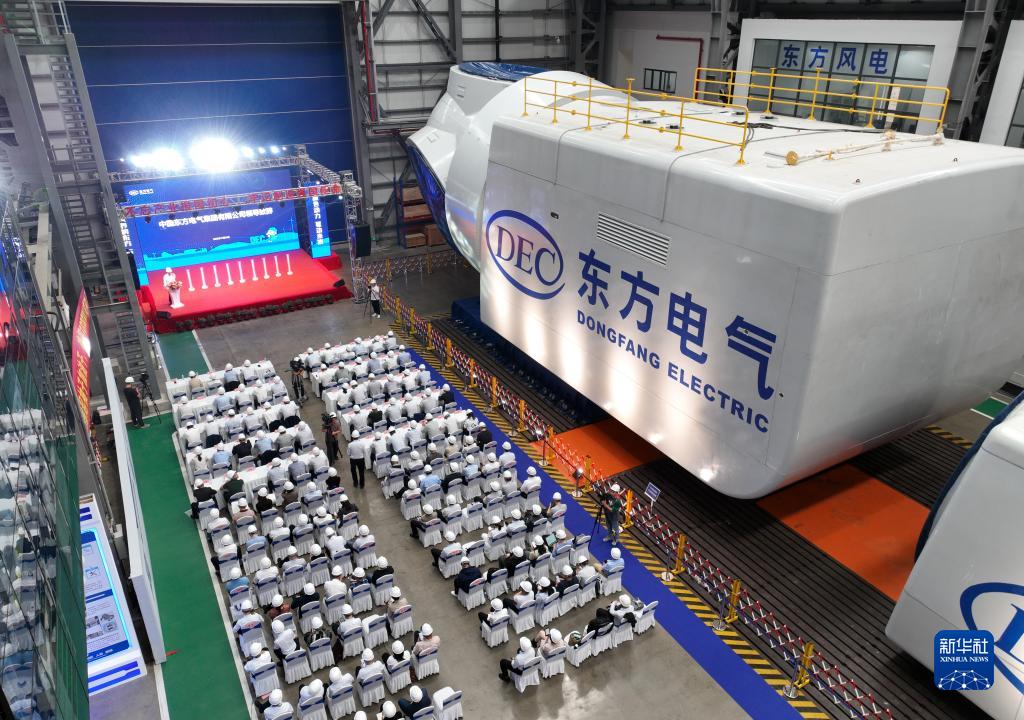 11月10日,我国拥有完全自主知识产权的18兆瓦海上直驱风电机组,在位于福建的尊龙人生就是博ag电气风电(福建)有限公司生产基地下线(无人机照片)。新华社记者 林善传 摄