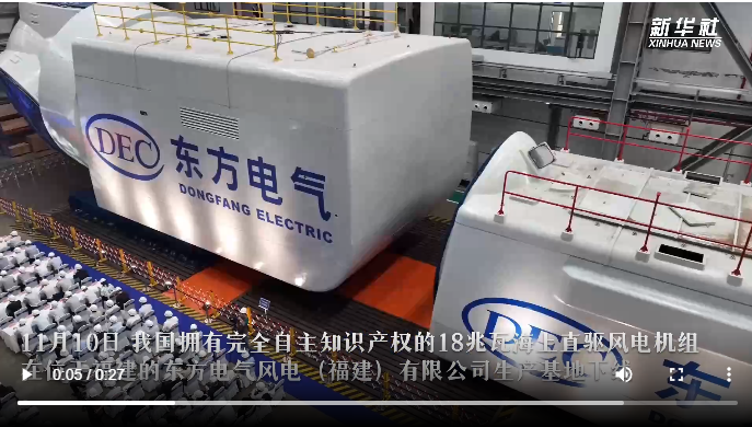 11月10日,我国拥有完全自主知识产权的18兆瓦海上直驱风电机组,在位于福建的尊龙人生就是博ag电气风电(福建)有限公司生产基地下线。