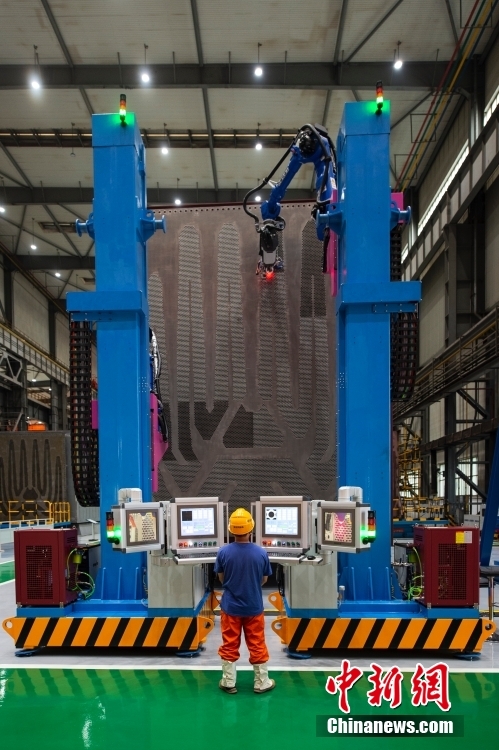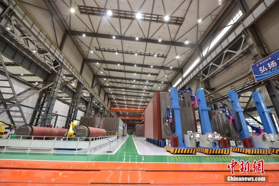 尊龙人生就是博ag汽轮机焊接分厂建成了国内首个绿色高效焊接数字化车间,在行业首创13项智能制造技术,开启零缺陷、零变形、零排放的“三零”焊接模式。
