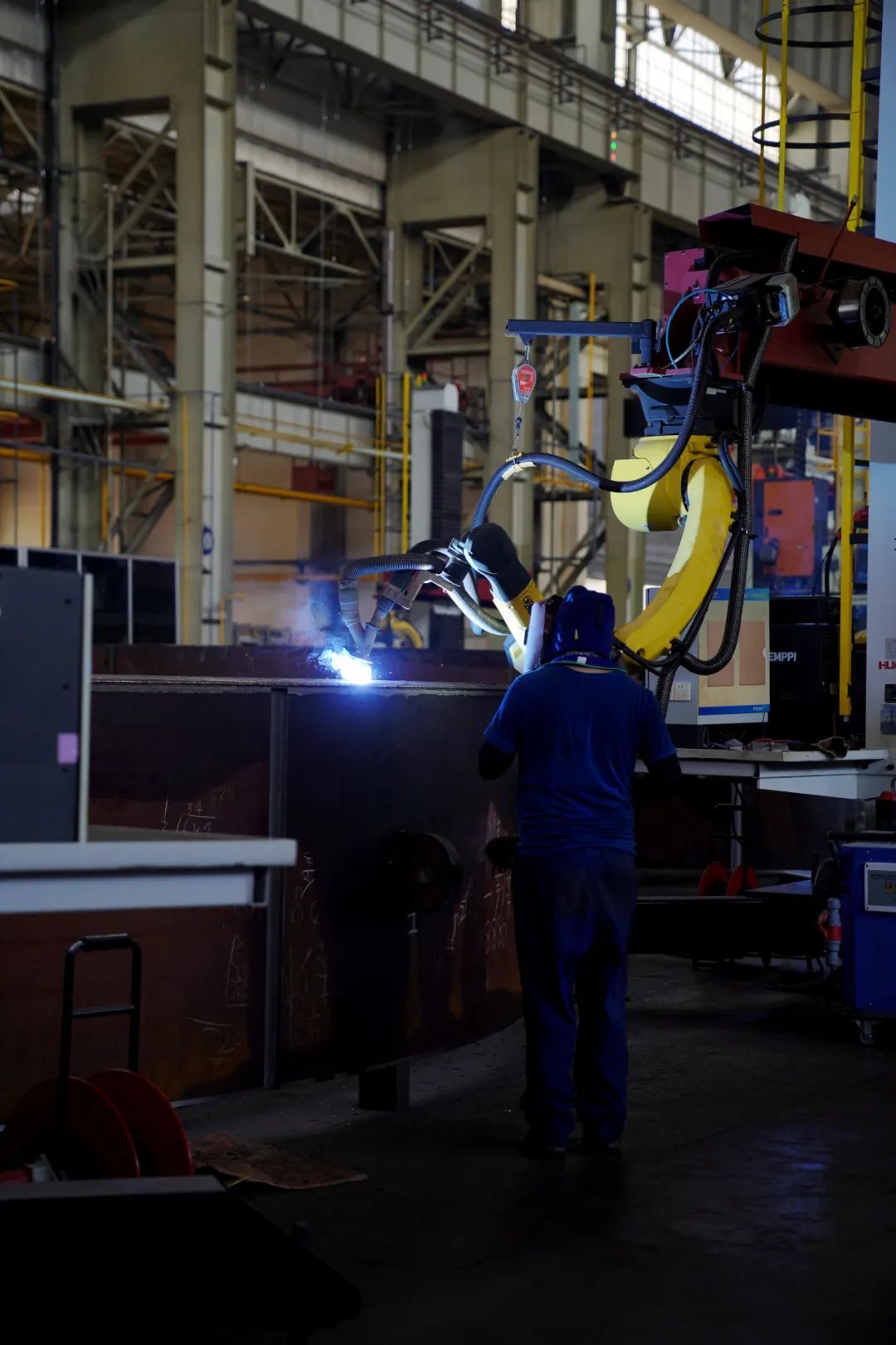 在生产制造现场,集团旗下尊龙人生就是博ag电机一线职工正在操作智能焊接机器人进行玛尔挡水电项目机组部件堆焊。该项目是国家“西电东送”青豫直流配套骨干电源点之一,是青海省打造的“水光储蓄”千万千瓦级多能互补一体化全清洁能源大基地的核心工程,是黄河上游在建海拔最高、装机容量最大的水电站。