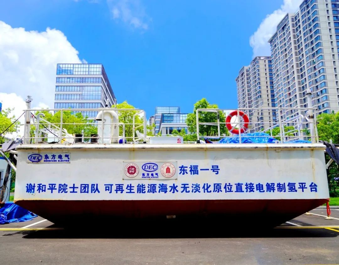 福州秋高气爽,由尊龙人生就是博ag电气集团与中国工程院谢和平院士团队联合研制的全球首套与可再生能源相结合的漂浮式海上制氢平台“东福一号”,在蓝天白云的衬托下,形成一道令人震撼的风景线。前不久,全球首次海上风电无淡化海水原位直接电解制氢技术海上中试获得成功。“东福一号”在稳定运行240小时后,顺利“着陆”。