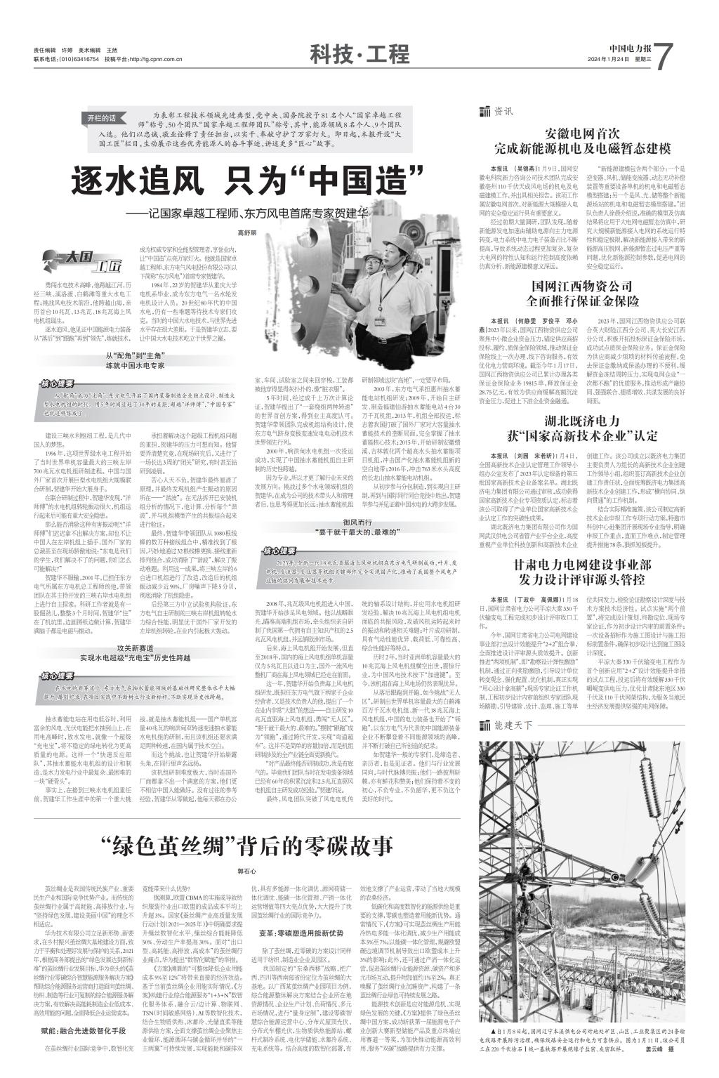 [中国电力报]逐水追风 只为“中国造”——记国家卓越工程师、尊龙人生就是博ag风电首席专家贺建华