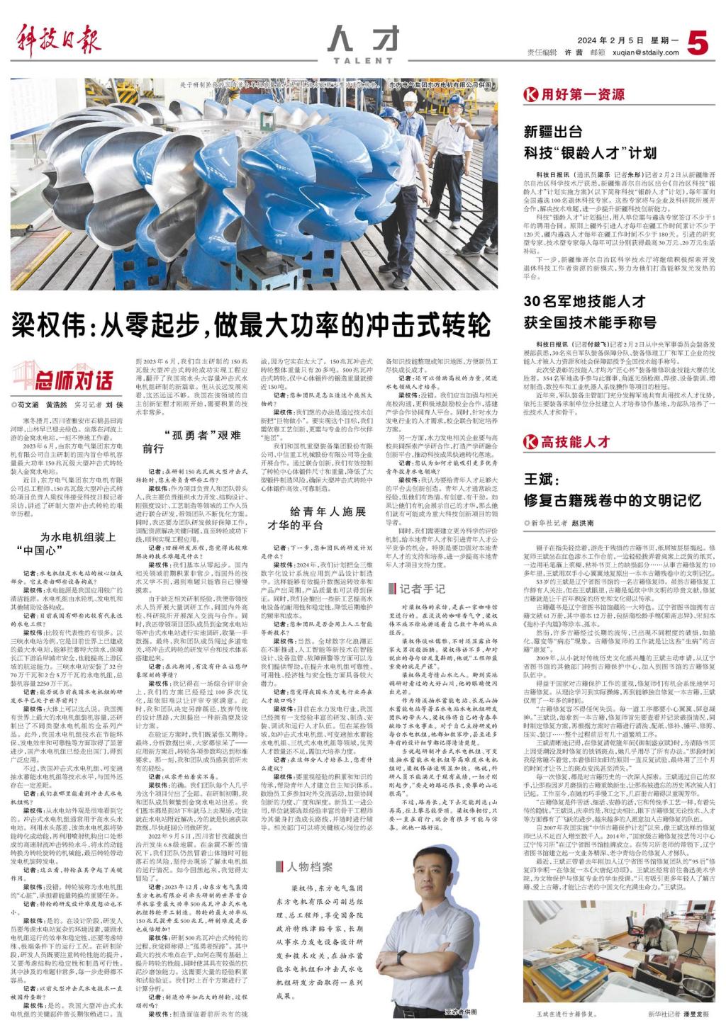 梁权伟:要重视经验的积累和知识的传承,帮助青年人才建立自主知识体系。鼓励员工多参加对外交流活动,加强协同创新的力度、广度和深度。新员工一进公司,单位就要选派经验丰富的骨干工程师为其量身打造成长路线,并随时进行辅导。相关部门可以将关键核心岗位的必备知识技能整理成知识地图,方便新员工尽快成长成才。