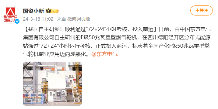 [国资小新]我国自主研制!顺利通过“72+24”小时考核,投入商运