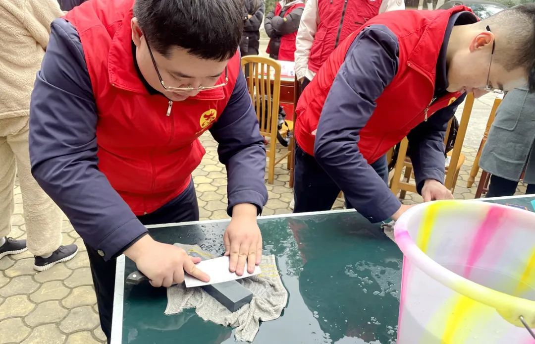身穿“红马甲”的志愿者们,全力开展磨菜刀、理发、量血压、拍全家福、打印塑封照片、换灯泡等多项志愿服务。一句句温暖人心的热情话语,一项项惠民便民的服务活动,得到现场群众纷纷点赞和一致好评。