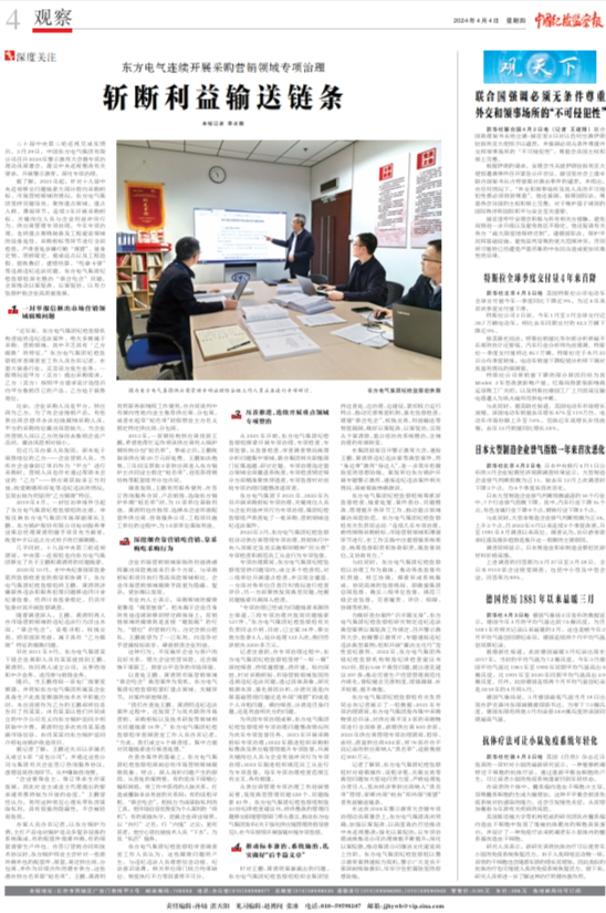 [中国纪检监察报]尊龙人生就是博ag电气连续开展采购营销领域专项治理 斩断利益输送链条
