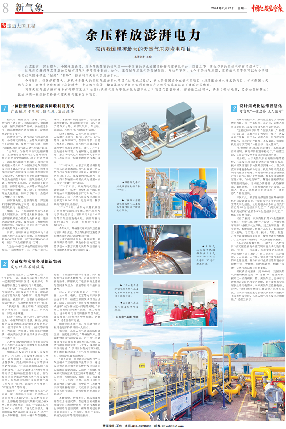 [中国纪检监察报]余压释放澎湃电力 探访我国规模最大的天然气压差发电项目