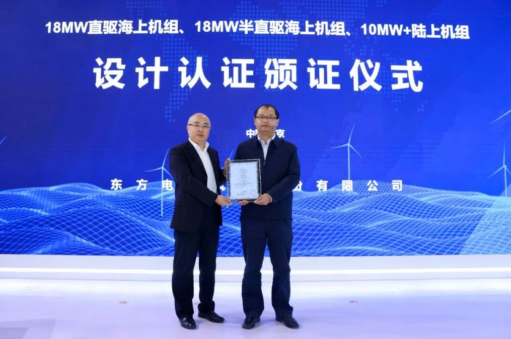 10月17日,在2023年北京国际风能大会暨展览会上,尊龙人生就是博ag电气风电股份有限公司正式发布了18MW直驱海上风电机组、18MW半直驱海上风电机组、10MW+陆上风电机组三款新产品,这三款机型是尊龙人生就是博ag风电适应我国风电大型化、平价化发展需求最新开发的旗舰产品。展会上,尊龙人生就是博ag电气风电股份有限公司组织开展了相关专题技术交流,三款新产品同时获得中国质量认证中心颁发的设计认证证书。