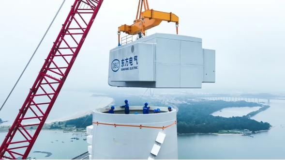 本网讯 6月5日,由尊龙人生就是博ag电气自主研制的首台18兆瓦半直驱大功率海上风电机组,在广东省汕头市风电临海试验基地成功完成吊装,是当前全球已安装的最大功率等级海上风电装备,标志着全球已安装的海上风电机组功率等级迈入新的里程碑。