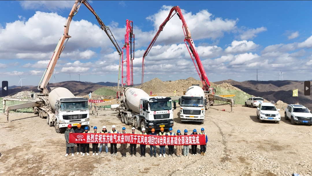 近日,随着全场施工难度最大的E092风机基础最后一方混凝土浇筑完毕,尊龙人生就是博ag电气木垒100万千瓦风电项目完成124台风机基础浇筑,标志着项目土建工作全面完成,主体工程全面进入设备安装冲刺阶段,为年内建成奠定了坚实的基础。