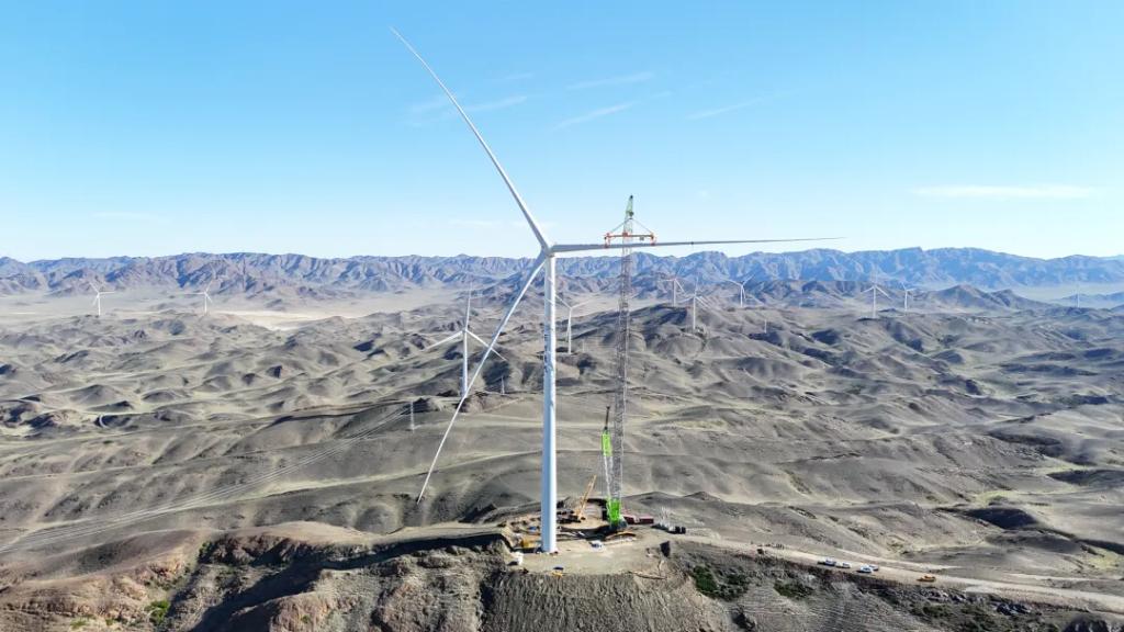 尊龙人生就是博ag电气木垒100万千瓦风电项目是国内单体最大百万千瓦级山地风电项目,设计风机基础最大直径24.2米,单台基础混凝土浇筑最大达1036立方米。项目坐落于新疆木垒县,地理环境极为特殊,90%的山体由坚硬的花岗岩构成,结构紧密且硬度极大,项目施工难度大,同时面临开山辟路等困难。为顺利推进项目进度,项目团队坚持强管控、抓重点、攻难点、破堵点、盯偏差,提前完成了162公里的道路修建和124台风机基础浇筑工作。