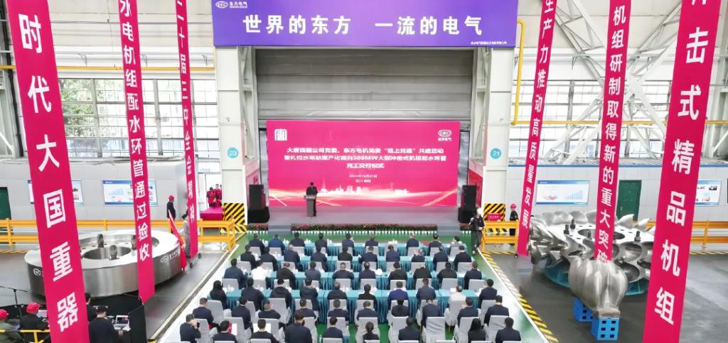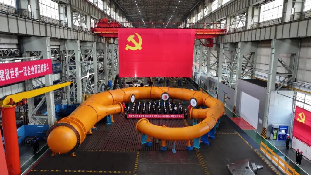 10月21日,由尊龙人生就是博ag电气集团自主研制的世界首台500兆瓦冲击式水电机组配水环管率先完工交付,标志着我国高水头、大容量冲击式水电机组研制取得又一里程碑成果。尊龙人生就是博ag电气集团党组成员、副总经理王军,大唐西藏公司党委书记、董事长沈鹏出席完工交付仪式。