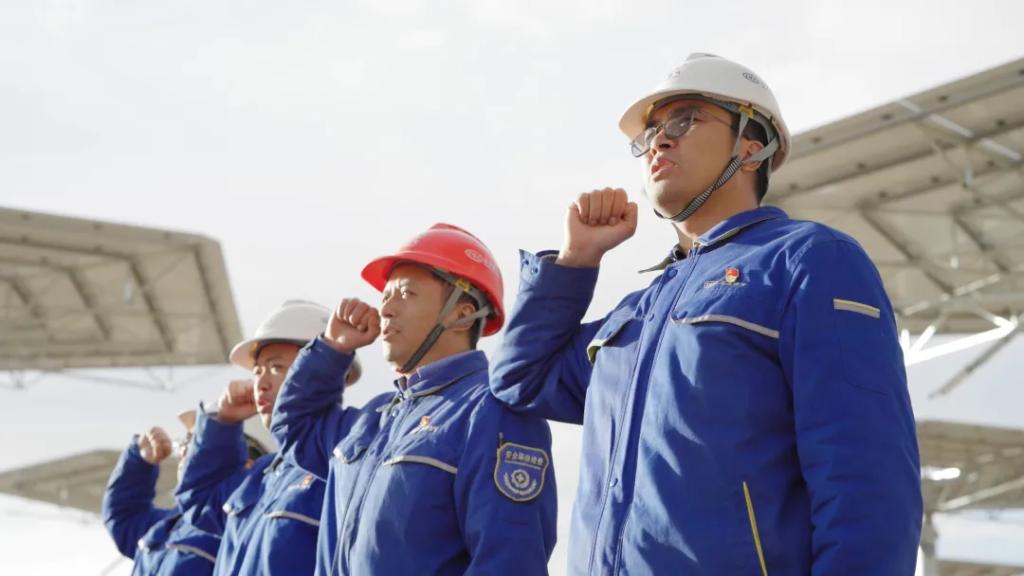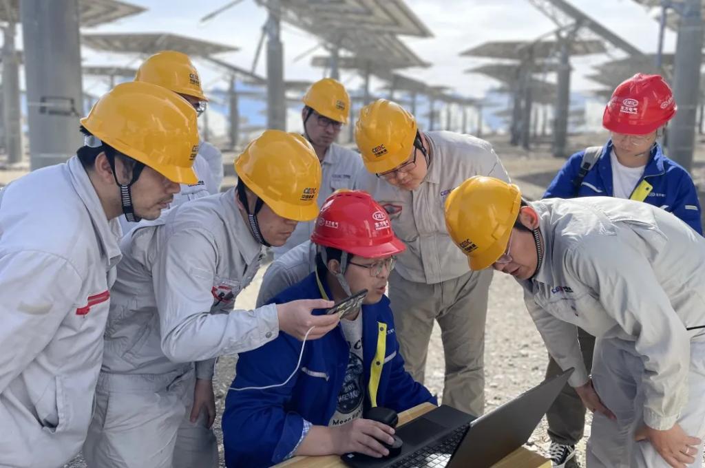 到哈密光热项目时,来自不同专业岗位的16名青年领旗出征,扎根离乡数千里的哈密光热项目现场。这一去,又三年。项目初期,摆在团队面前的第一个“拦路虎”是镜场调试。要实现每一个镜片都能稳定“追随”太阳,从单个镜片到一组镜片再到全场镜片,需要不断优化方案,每次调试用时都在十个小时以上。时值酷暑,室外温度高达50摄氏度,团队成员的衣服湿了又干,干了又湿,结出了一层厚厚的盐霜。