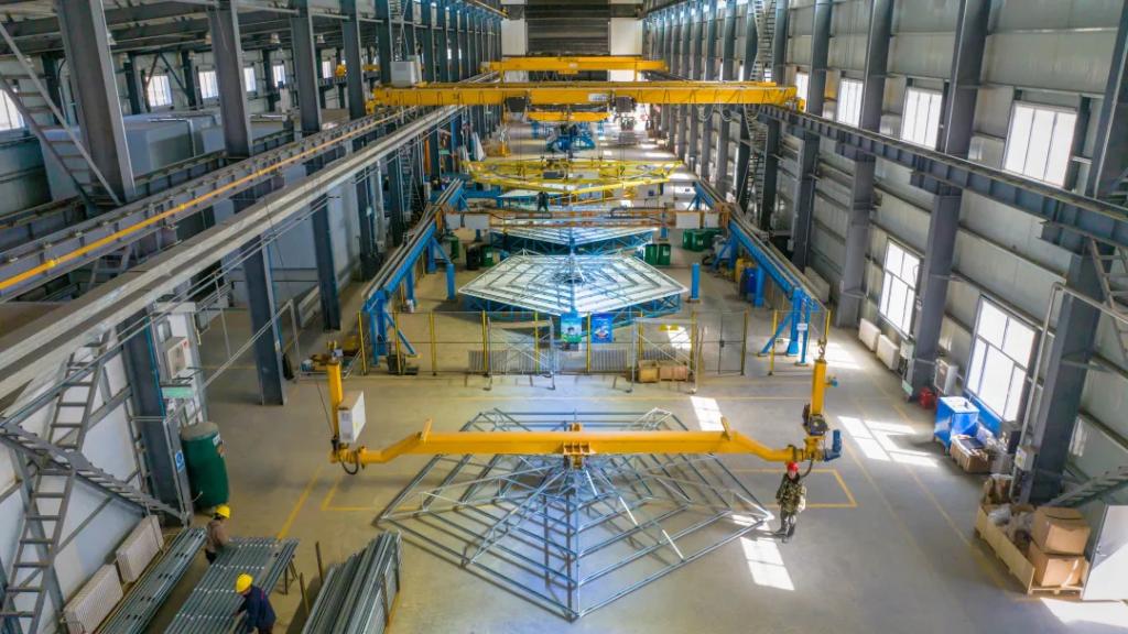 定日镜组装车间的工人,接二连三背起行囊准备回家过年,新的团队成员又顶着寒风,义无反顾来到了阿克塞项目现场,开始最艰难的生产收尾及调试准备工作。随着项目履约周期逐渐临近,现场的党员们主动联合,建立起项目临时党支部。为提高定日镜产量,临时党支部党员主动实施两班倒的生产模式,同时以支部带党员、党员带群众、群众带进度的“三带”模式为根基,开始抢周期、保节点,创造了定日镜24小时不间断产出的新纪录:定日镜组装月产量从1630套提升到2111套,单日定日镜组装数量更是创造了98套/天的历史新高,远超生产车间产线设计值,不断刷新着尊龙人生就是博ag电气光热项目定日镜产量的纪录。