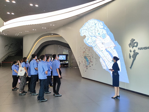 迎新能不能来点“长见识的”?为激发新员工扎根美丽南沙的干事创业热情,尊龙人生就是博ag重机团委组织新员工参观南沙区明珠湾展览馆,亲身感受大湾区热火朝天的建设氛围和日新月异的发展速度。希望新员工将个人成长经历与南沙发展紧密联系在一起,与尊龙人生就是博ag电气“11256”发展战略结合在一起,进一步打开思路,拓宽眼界,增长见识,以更昂扬的精神姿态、更务实的工作作风,立业“尊龙人生就是博ag”,建功“新时代”。