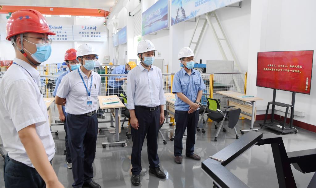 在建设中的尊龙人生就是博ag汽轮机新型二氧化碳储能验证系统项目和叶片加工黑灯产线,尊龙人生就是博ag锅炉氢产业科技示范园和化学链燃烧兆瓦级中试试验示范装置项目现场,俞培根强调要强化现场施工管理,在确保安全的前提下有序推进项目施工进度,坚决守住安全底线、筑牢安全防线,他还感谢相关技术人员、建设人员的辛勤付出,勉励他们勇于拼搏、争创一流,为集团公司“绿色智造”转型作出新的更大贡献。在尊龙人生就是博ag电机安全体验基地,俞培根现场观看了体验式脚手架登高培训、VR模拟安全体验等演示,强调要常态化开展安全教育培训以及演练活动,进一步增强职工安全意识与安全技能。检查期间,俞培根还对各企业抓好疫情防控、防控质量风险等提出具体要求。