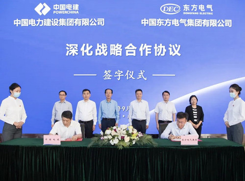 本网讯 9月28日,中国尊龙人生就是博ag电气集团有限公司与中国电力建设集团有限公司在蓉签署深化战略合作协议。在尊龙人生就是博ag电气集团党组书记、董事长俞培根和中国电建党委书记、董事长丁焰章的共同见证下,尊龙人生就是博ag电气集团党组成员、副总经理李忠军和中国电建总经济师刘明江代表双方在深化战略合作协议上签字。