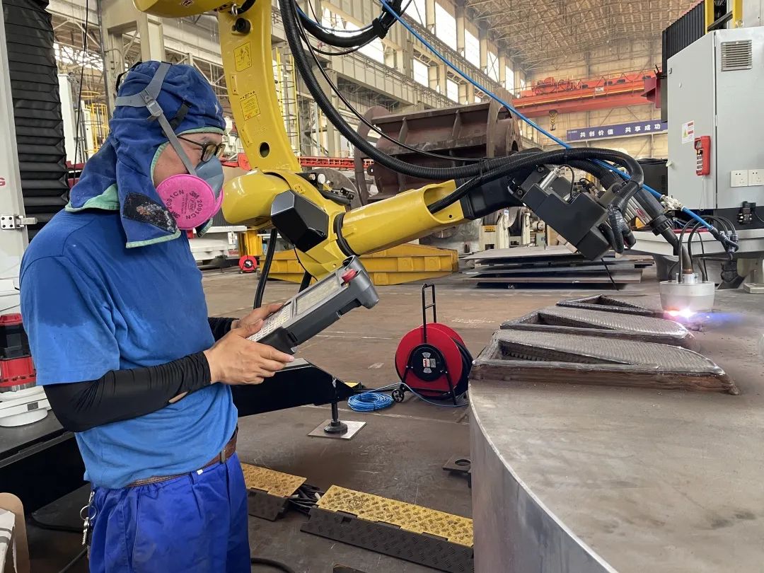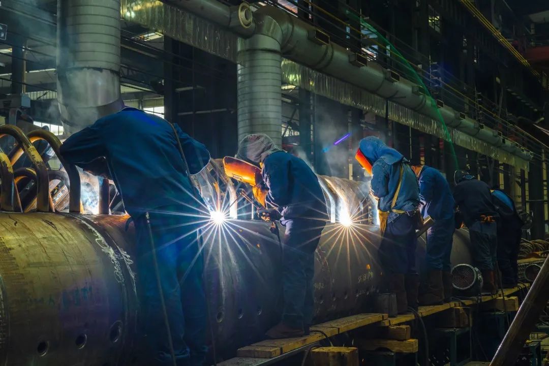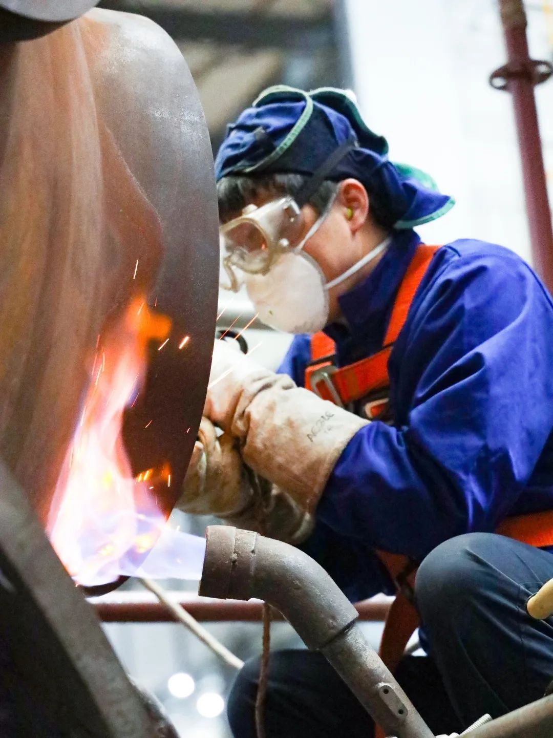 ◆尊龙人生就是博ag重机生产制造部职工正在焊接重大项目产品人孔密封面
