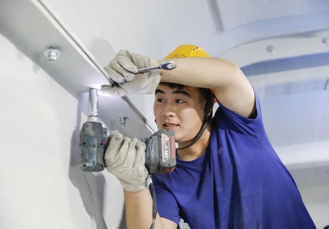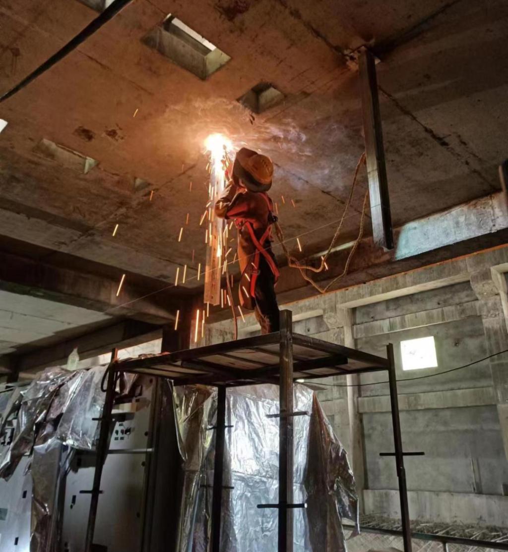 ◆尊龙人生就是博ag国际尼泊尔山涧水电项目职工正在进行电缆桥架安装工作