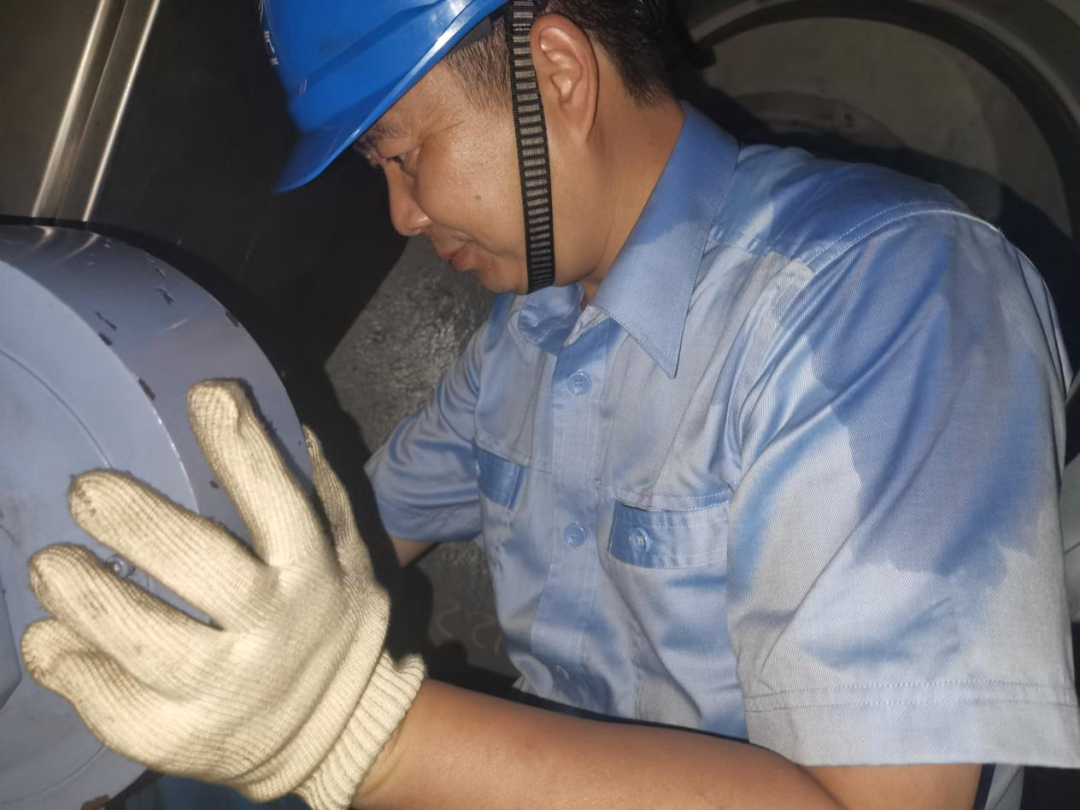 ◆尊龙人生就是博ag锅炉重容车间职工在对汽包筒身内壁环缝批磨