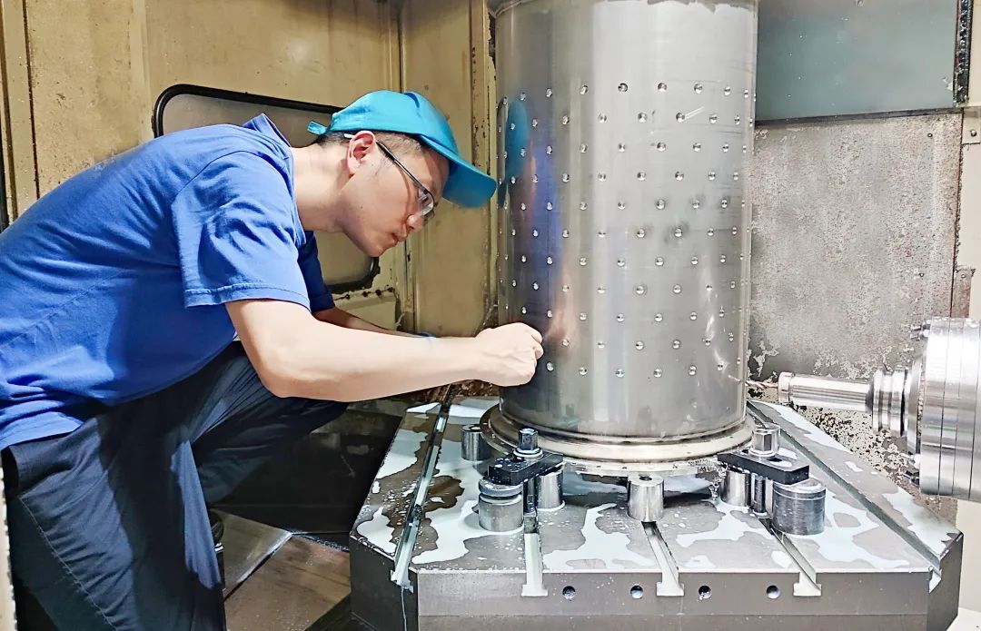 ◆尊龙人生就是博ag汽轮机金工分厂职工正在对G50德阳项目燃烧器内筒进行铣削加工