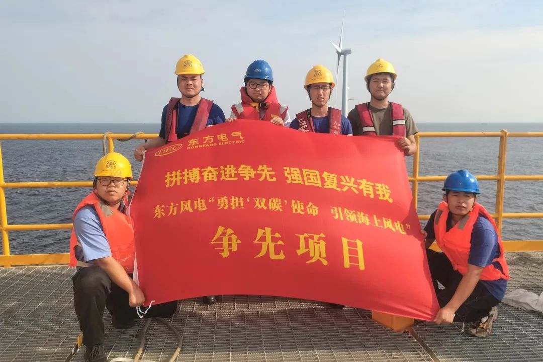 为加快推进13兆瓦抗台风型海上风机安调并网进度,尊龙人生就是博ag风电以创新为抓手,依托争先项目,充分发挥党建引领作用,成立党员攻关团队,全力攻克技术难关。在13兆瓦风机成功下线基础上,成立风电研究设计院党员攻关队,针对百米级叶片组织开展多项分析研究和数次仿真验证,并顺利通过静力测试,保证了叶片的可靠性。同时,攻关队自主研发的全新一代全国产化集成式双驱变桨系统顺利通过鉴衡认证,从根本上解决了超大型风电机组变桨系统的供应链瓶颈与安全问题。另一方面,交付中心牵头,协同研发、供应链、质量、安全各部门,成立13兆瓦风机安调党员攻关队,克服台风、疫情等不利因素,积极推进新技术应用,大胆改进工艺,将叶片安装时间由2天缩短至20小时,效率显著提升。同时,攻关队还开展多次新吊装工艺学习培训,切实为13兆瓦风机安调并网做好准备。