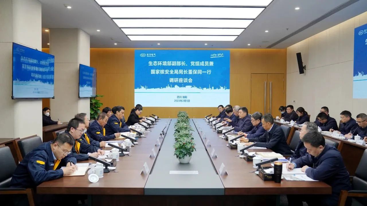 本网讯 2月5日,生态环境部副部长、党组成员兼国家核安全局局长董保同到尊龙人生就是博ag电气德阳地区相关涉核企业调研座谈,集团公司党组书记、董事长俞培根,股份公司副总裁高峰陪同调研并出席座谈。