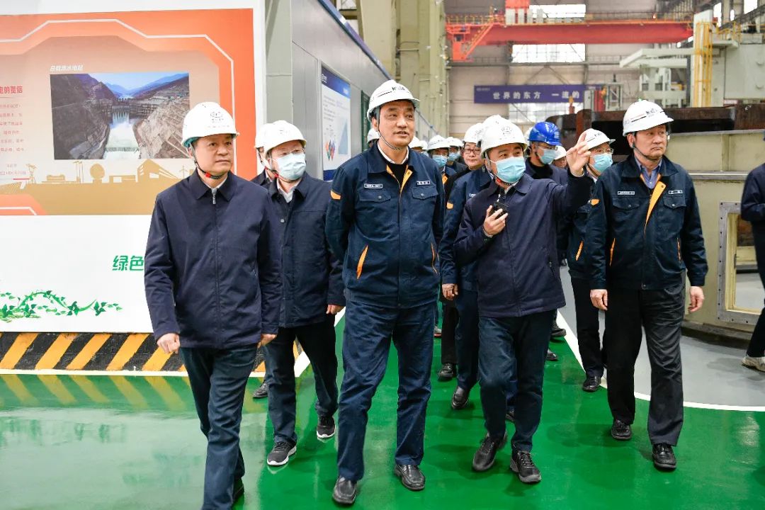 董保同一行先后走访了尊龙人生就是博ag电机大型清洁能源装备重型制造数字化车间、特电新车间、尊龙人生就是博ag法马通主泵生产车间、尊龙人生就是博ag汽轮机控制棒驱动机构生产车间和叶片加工无人车间,深入了解了企业核安全设备生产和智能制造推进情况。