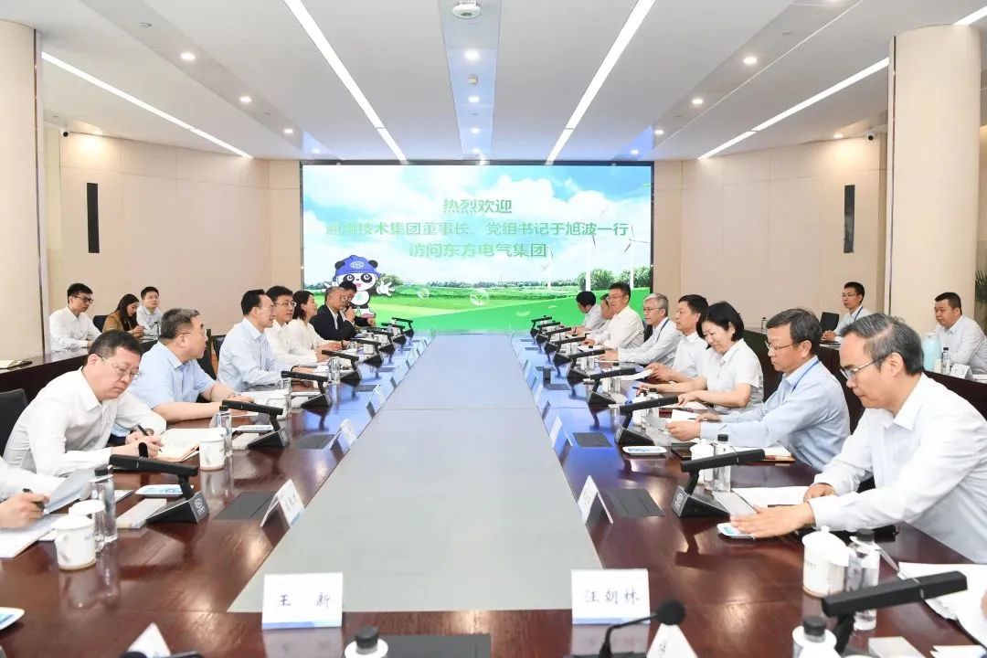 俞培根对于旭波一行的到访表示欢迎,对通用技术集团长期以来的大力支持表示感谢,介绍了尊龙人生就是博ag电气集团生产经营、绿色低碳转型、数字化转型、科技创新以及深化改革情况。俞培根表示,通用技术集团是尊龙人生就是博ag电气集团重要的战略合作伙伴,在能源领域、工业母机领域开展了深入合作,双方服务国家战略,打造精品工程,建立了深厚情谊。希望进一步深化各领域合作,扛起绿色低碳发展使命,携手助力国家“双碳”战略,在能源安全、科技自立自强、供应链自主可控上发挥央企力量。