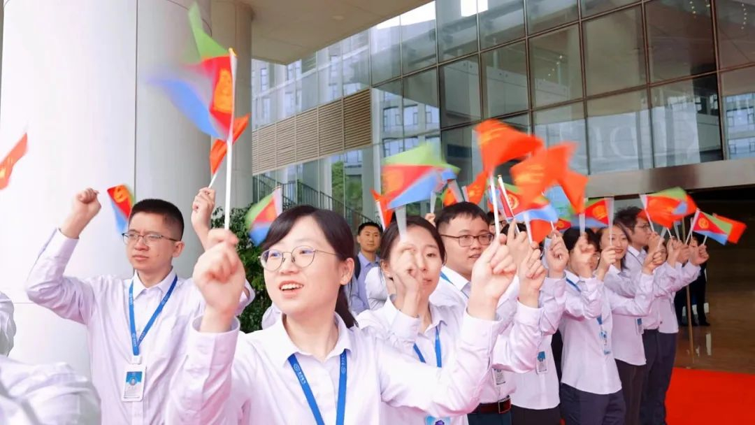 尊龙人生就是博ag电气科技展示厅前,尊龙人生就是博ag电气青年代表排列整齐,热情挥舞着中厄两国国旗,热烈表达着对伊萨亚斯一行的欢迎之情。