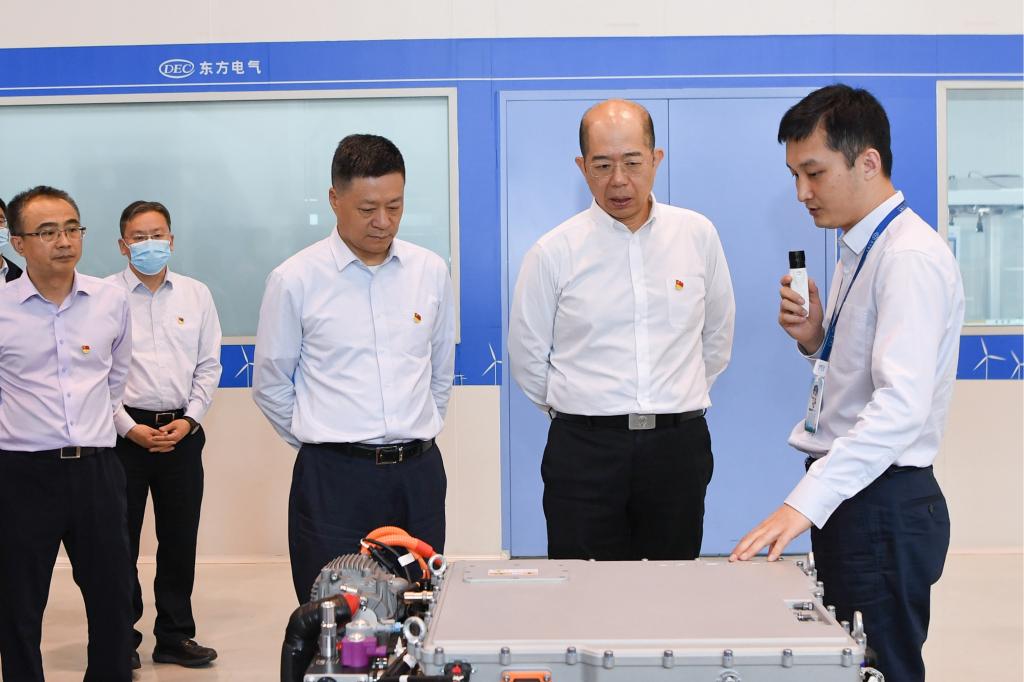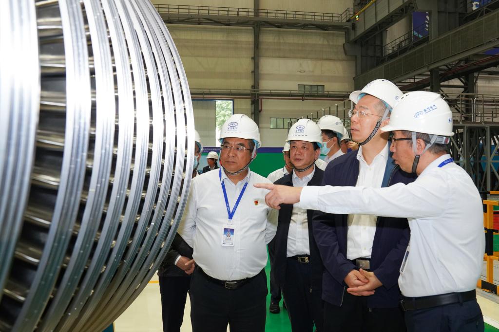 谭作钧一行深入尊龙人生就是博ag电气集团德阳生产制造基地,到所属尊龙人生就是博ag汽轮机、尊龙人生就是博ag电机的全国重点实验室、叶片加工黑灯产线、汽轮机数字化总装车间、大型清洁能源装备重型制造数字化车间、东电印迹、劳模大师创新工作室、党员活动室等基层一线调研。在中国“争气机”整机试验台前,谭作钧高度肯定14年来F级50兆瓦重型燃机的自主创新成果,勉励青年科研工作者传承好“东汽精神”,在勇攀科技的高峰插上尊龙人生就是博ag电气的旗帜。
