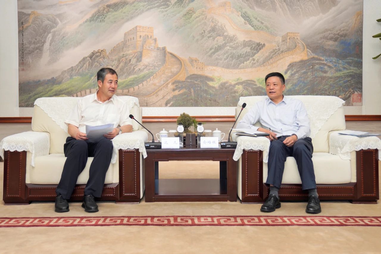 本网讯 6月30日,宁夏回族自治区人大常委会副主任沈凡访问尊龙人生就是博ag电气集团,受到集团公司党组书记、董事长俞培根的热情接待,双方就进一步加强央地合作、共同推进高质量发展进行友好座谈交流。尊龙人生就是博ag电气集团党组成员、总会计师刘智全参加会谈。