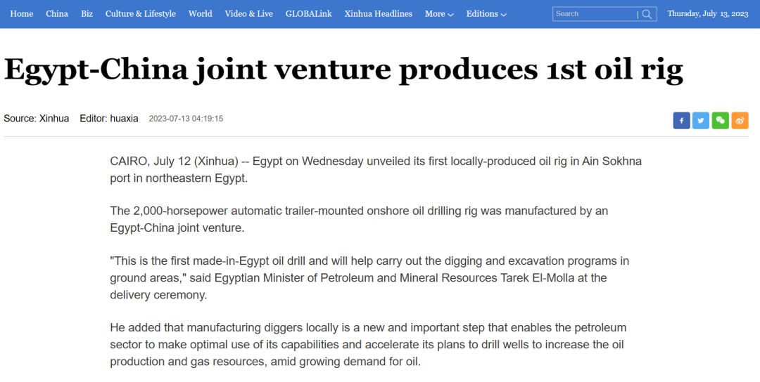 活动当天,埃及石油与矿产资源部在Facebook中介绍了本次交付仪式。埃及能源行业主流媒体《石油的未来》刊登了题为《在Tarek El-Molla时代,EPHH是如何成功制造埃及和中东的第一款陆地钻机的?》的报道,介绍了在EPHH(宏华埃及)的支持下,埃及逐渐实现钻机本土制造的创举,此次重大成就不仅为当地提供了丰富的就业机会,还进一步扩大了EPHH(宏华埃及)在埃及和中东的影响力。