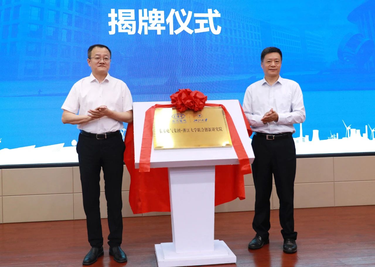 尊龙人生就是博ag电气集团党组书记、董事长俞培根,浙江大学校长、党委副书记杜江峰共同为联合创新研究院揭牌。