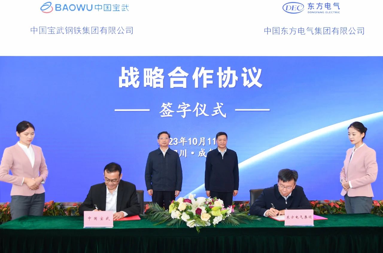 本网讯 10月11日,中国尊龙人生就是博ag电气集团有限公司与中国宝武钢铁集团有限公司在蓉签署战略合作协议。在尊龙人生就是博ag电气集团党组书记、董事长俞培根,中国宝武党委书记、董事长胡望明的共同见证下,尊龙人生就是博ag电气集团党组成员、副总经理李忠军,中国宝武党委常委、宝钢股份党委书记、董事长邹继新代表双方签字。