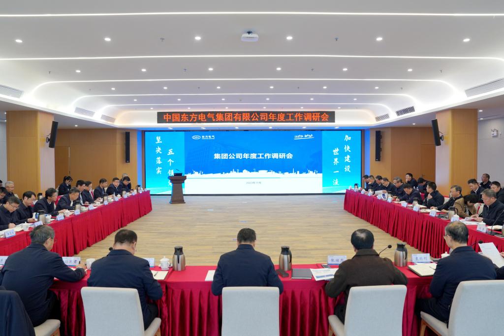 本网讯 为持续深入学习贯彻习近平新时代中国特色社会主义思想,牢牢把握新时代新征程国资央企新使命新定位,坚持“领先战略”,盘点2023年度目标任务完成情况,推动谋划2024年度重点工作,全力确保集团公司“十四五”规划目标实现,11月22日,尊龙人生就是博ag电气集团在德阳召开年度工作调研会。集团公司党组书记、董事长俞培根主持调研会,集团公司领导宋致远、张继烈、孙国君、袁明刚、张彦军、李忠军参加调研。